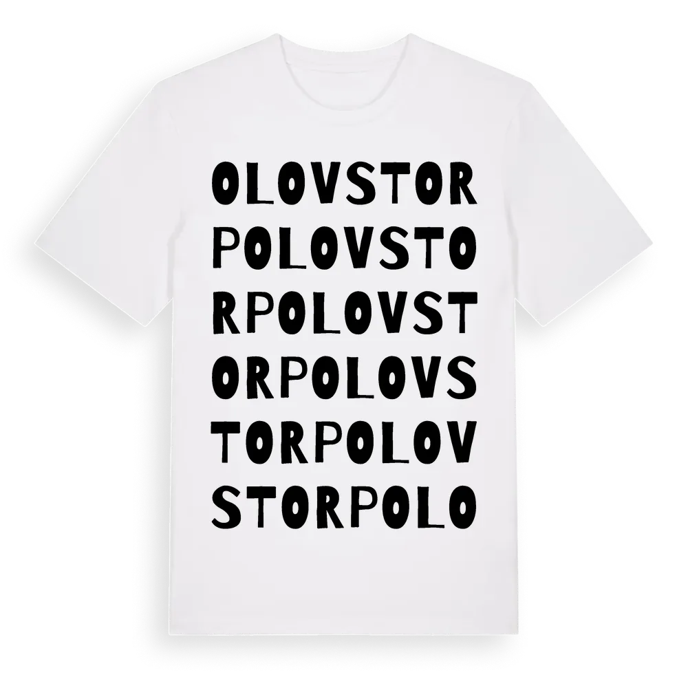Olovstorp ordlek t-shirt är inspirerad av Olovstorp i Värmlands län, Sverige. Tröjan är designad för dig som har en speciell koppling till platsen – oavsett om du bor här, har rötterna här eller bara älskar Olovstorp.