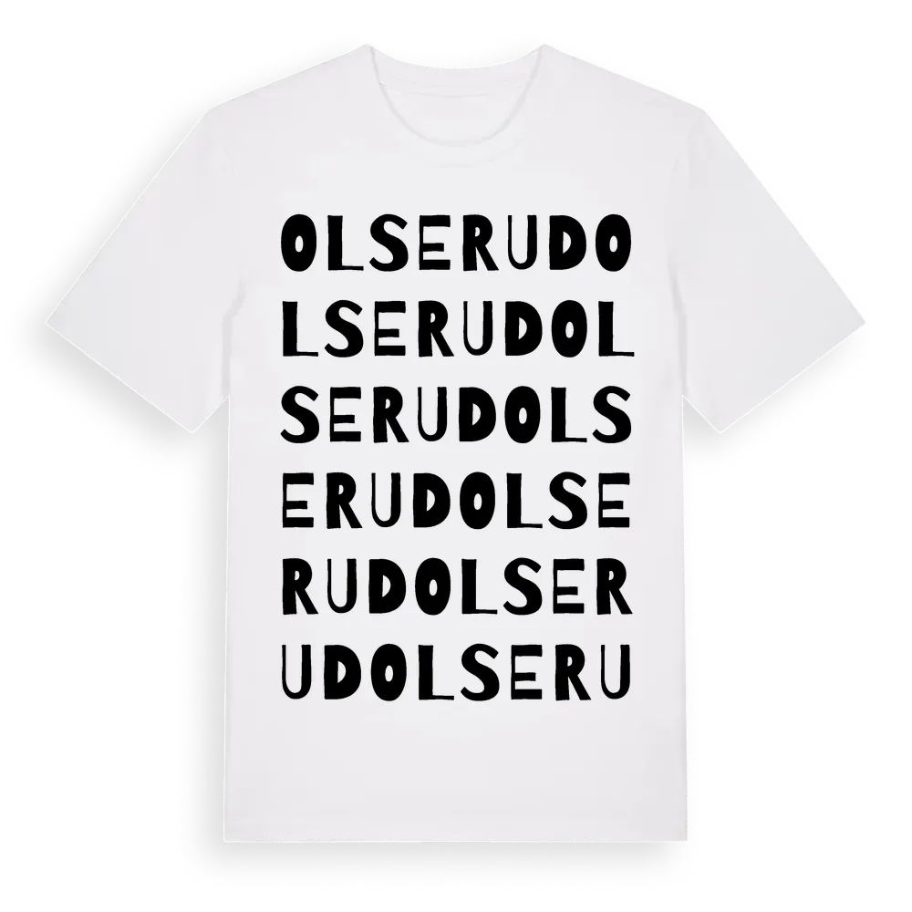 Olserud ordlek t-shirt är inspirerad av byn Olserud i Värmlands län, Sverige. Tröjan är designad för dig som har en speciell koppling till platsen – oavsett om du bor här, har rötterna här eller bara älskar Olserud.