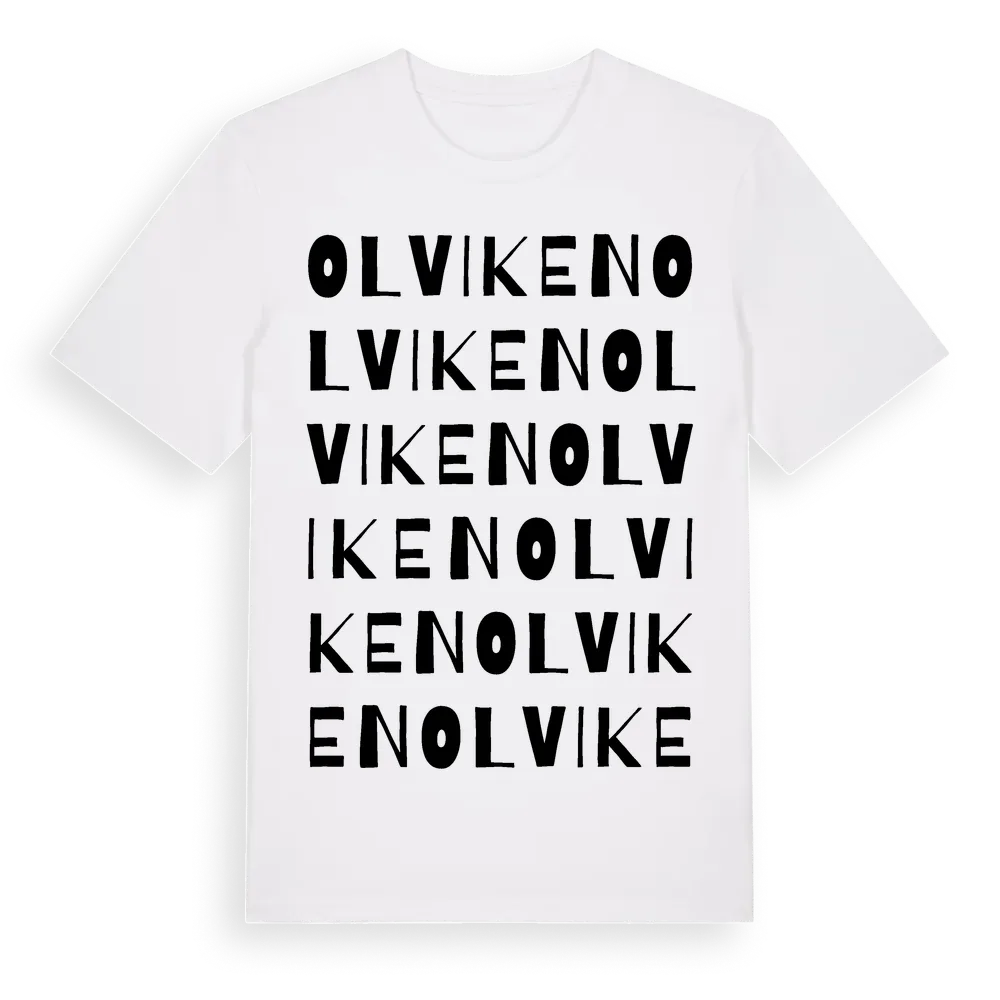 Olviken ordlek t-shirt är inspirerad av Olviken i Värmlands län, Sverige. Tröjan är designad för dig som har en speciell koppling till platsen – oavsett om du bor här, har rötterna här eller bara älskar Olviken.