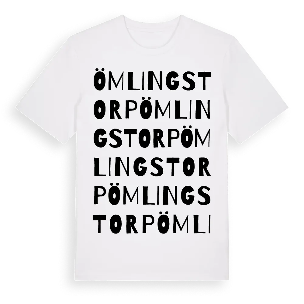 Ömlingstorp ordlek t-shirt är inspirerad av Ömlingstorp i Värmlands län, Sverige. Tröjan är designad för dig som har en speciell koppling till platsen – oavsett om du bor här, har rötterna här eller bara älskar Ömlingstorp.