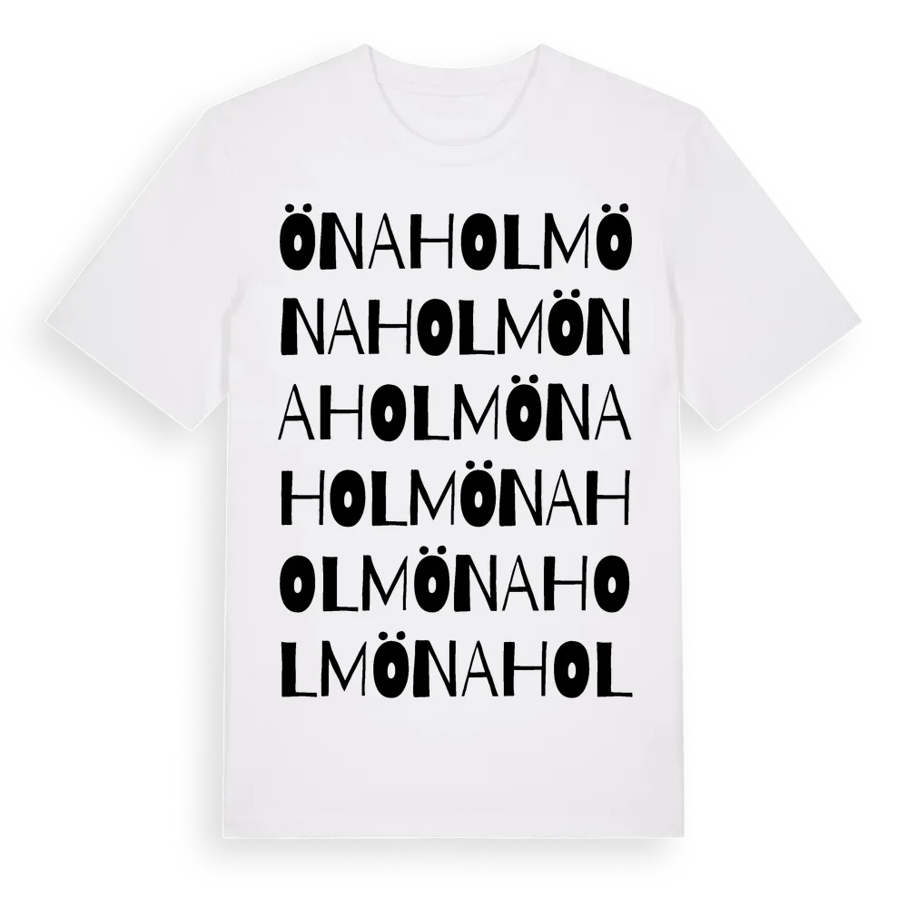 Önaholm ordlek t-shirt är inspirerad av ön Önaholm i Värmlands län, Sverige. Tröjan är designad för dig som har en speciell koppling till platsen – oavsett om du bor här, har rötterna här eller bara älskar Önaholm.