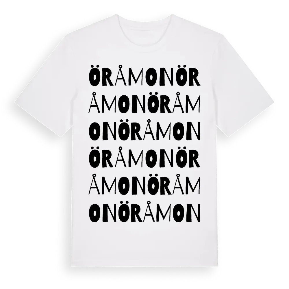 Öråmon ordlek t-shirt är inspirerad av Öråmon i Värmlands län, Sverige. Tröjan är designad för dig som har en speciell koppling till platsen – oavsett om du bor här, har rötterna här eller bara älskar Öråmon.