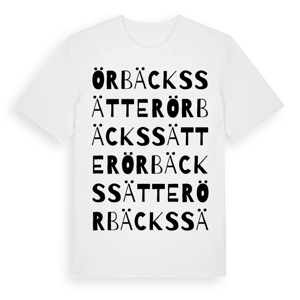 Örbäckssätter ordlek t-shirt är inspirerad av Örbäckssätter i Värmlands län, Sverige. Tröjan är designad för dig som har en speciell koppling till platsen – oavsett om du bor här, har rötterna här eller bara älskar Örbäckssätter.