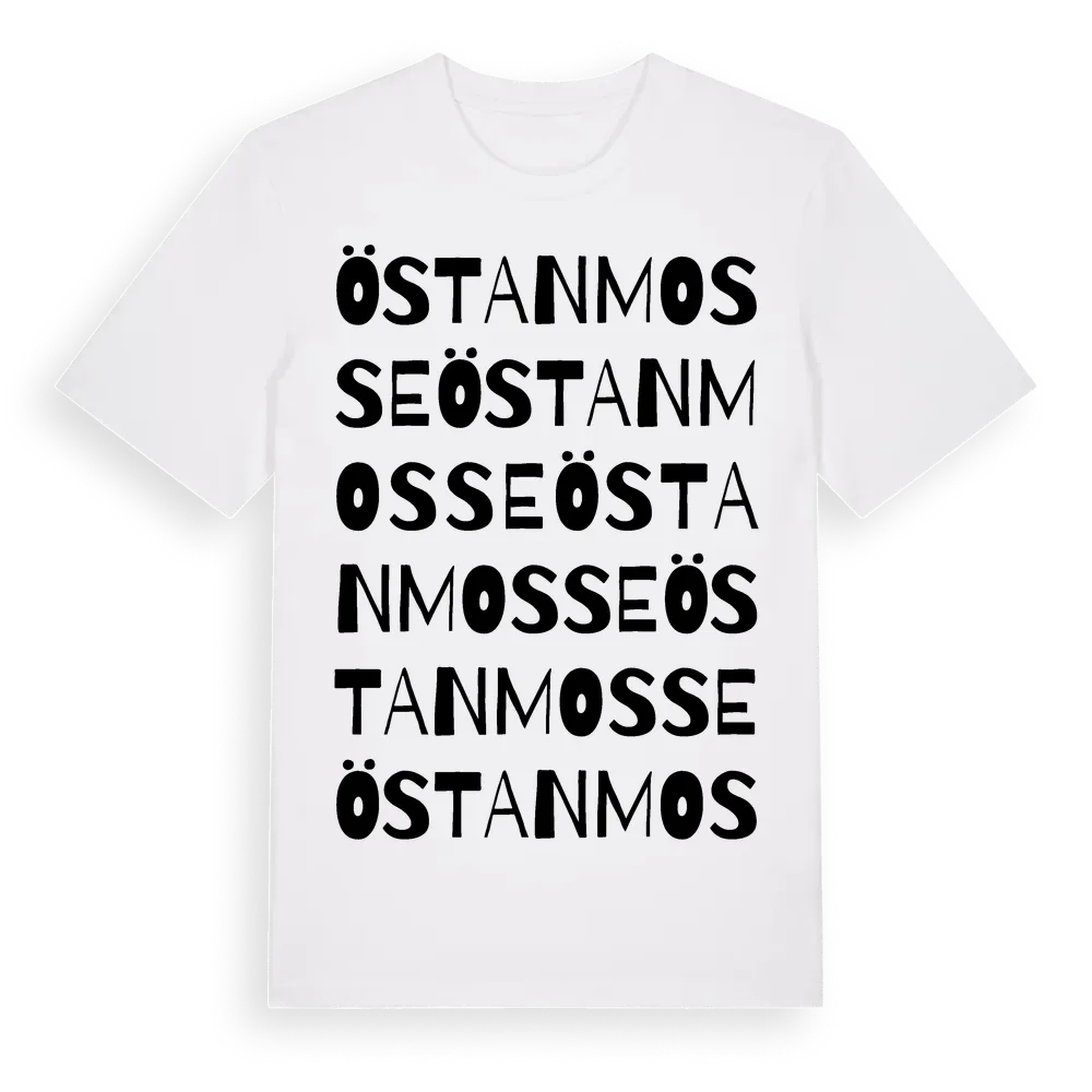 Östanmosse ordlek t-shirt är inspirerad av Östanmosse i Värmlands län, Sverige. Tröjan är designad för dig som har en speciell koppling till platsen – oavsett om du bor här, har rötterna här eller bara älskar Östanmosse.