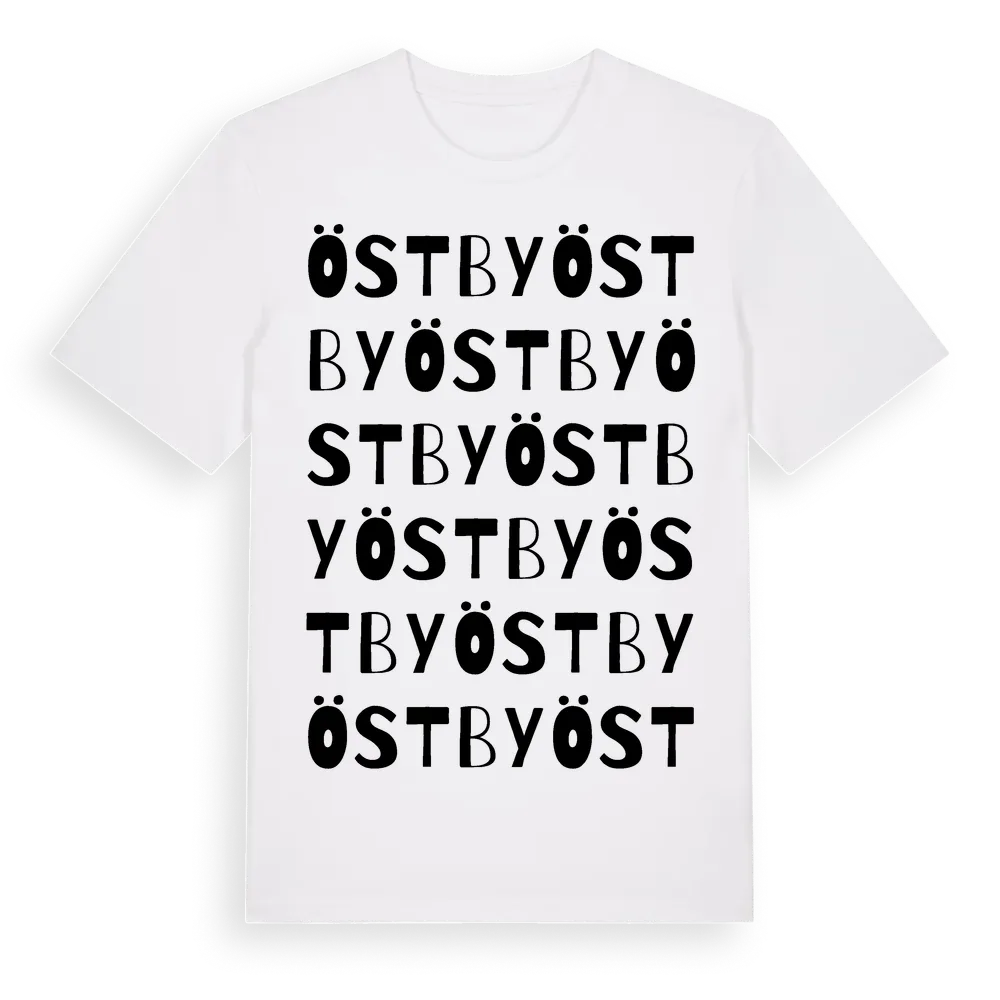 Östby ordlek t-shirt är inspirerad av Östby i Värmlands län, Sverige. Tröjan är designad för dig som har en speciell koppling till platsen – oavsett om du bor här, har rötterna här eller bara älskar Östby.