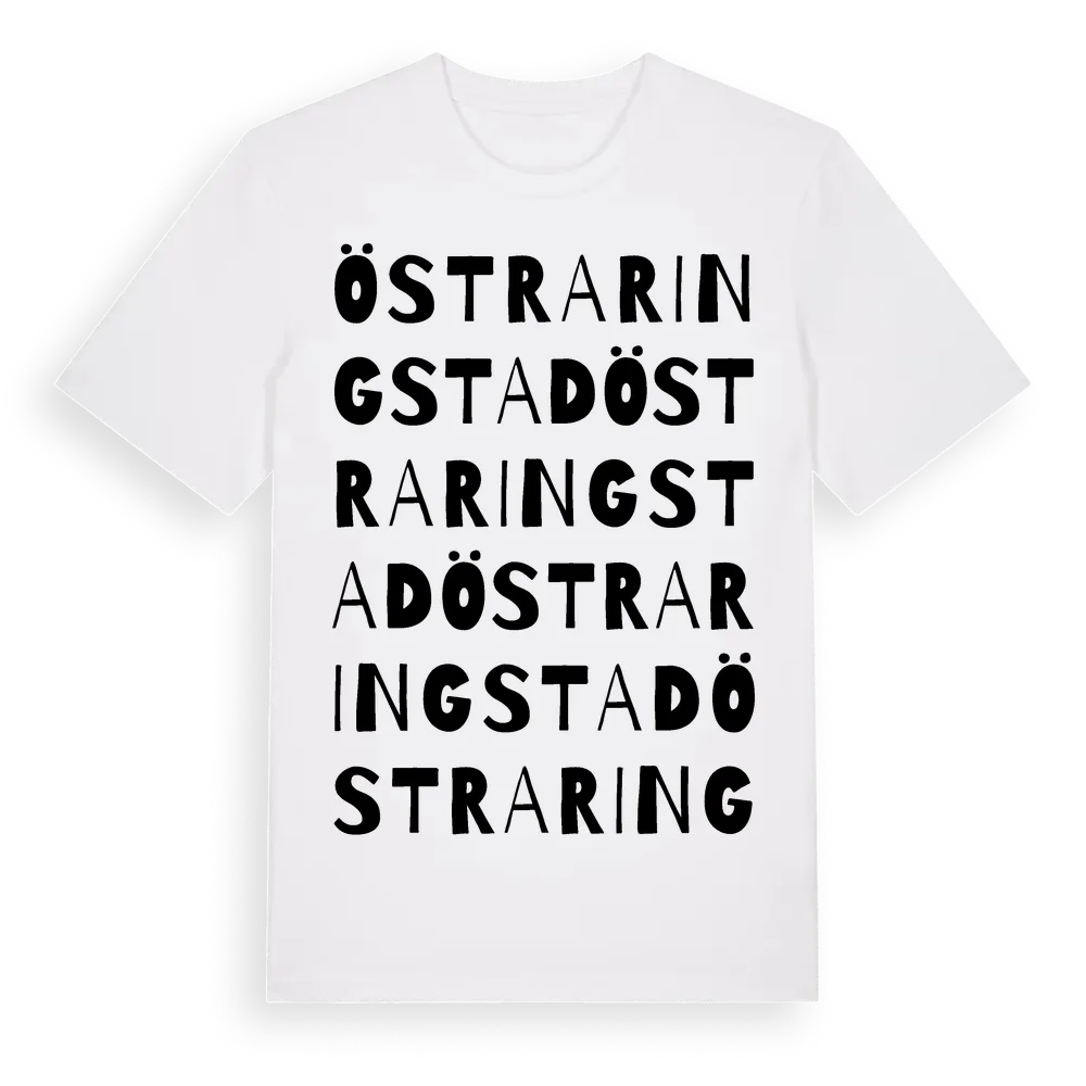 Östra Ringstad ordlek t-shirt är inspirerad av Östra Ringstad i Värmlands län, Sverige. Tröjan är designad för dig som har en speciell koppling till platsen – oavsett om du bor här, har rötterna här eller bara älskar Östra Ringstad.