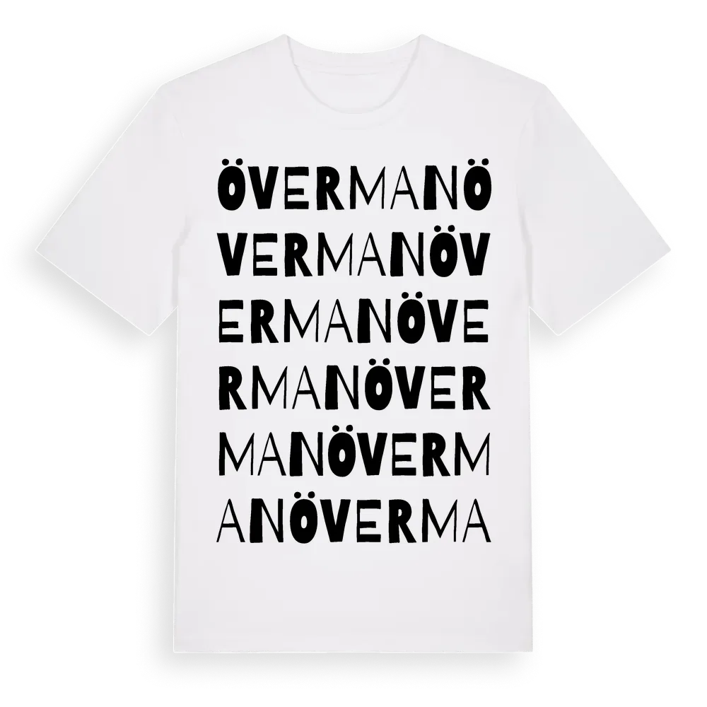 Överman ordlek t-shirt är inspirerad av Överman i Värmlands län, Sverige. Tröjan är designad för dig som har en speciell koppling till platsen – oavsett om du bor här, har rötterna här eller bara älskar Överman.