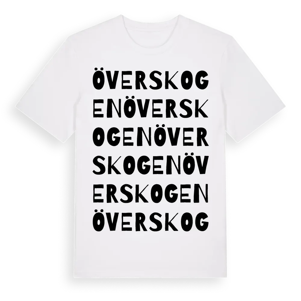 Överskogen ordlek t-shirt är inspirerad av Överskogen i Värmlands län, Sverige. Tröjan är designad för dig som har en speciell koppling till platsen – oavsett om du bor här, har rötterna här eller bara älskar Överskogen.