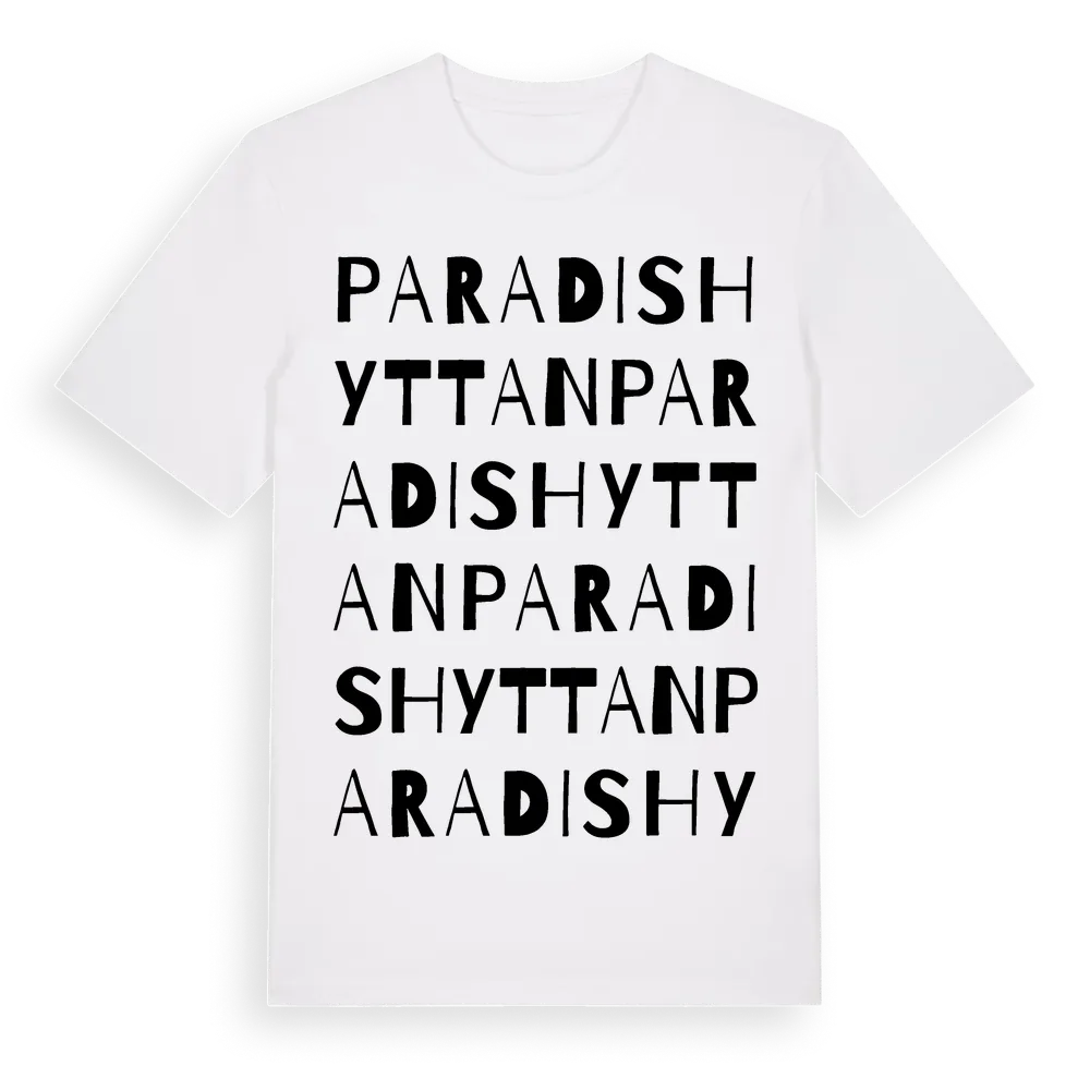 En ordlek byggd på Paradishyttans namn. Subtilt och klurig – ett motiv som bara de som verkligen känner platsen fullt ut förstår. Premium bomull, unisex – från Paradishyttan i Värmlands län.