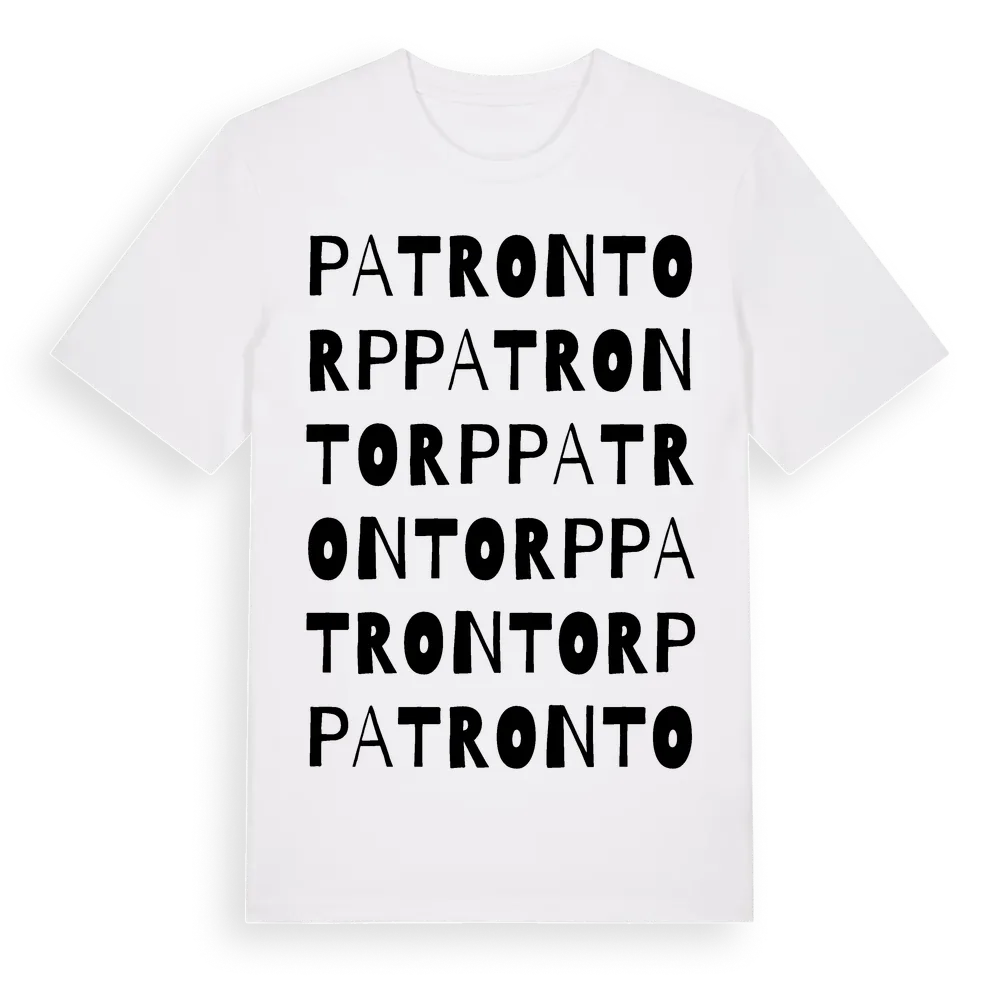 En ordlek byggd på Patrontorps namn. Subtilt och klurig – ett motiv som bara de som verkligen känner platsen fullt ut förstår. Premium bomull, unisex – från Patrontorp i Värmlands län.