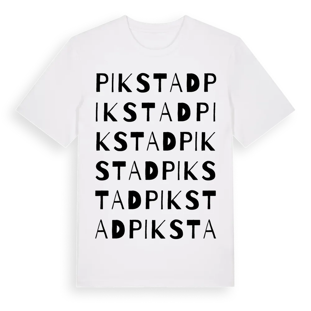 Pikstad ordlek t-shirt är inspirerad av Pikstad i Värmlands län, Sverige. Tröjan är designad för dig som har en speciell koppling till platsen – oavsett om du bor här, har rötterna här eller bara älskar Pikstad.