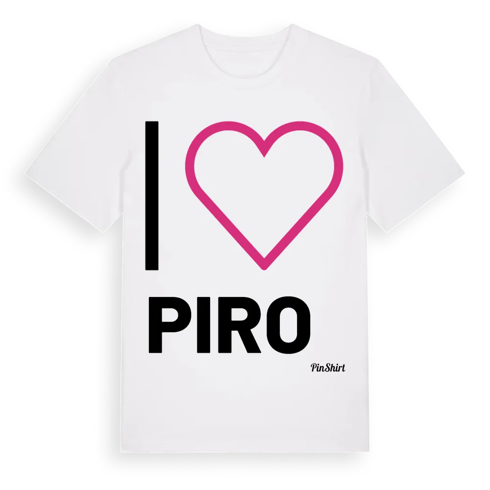 Jag älskar Piro t-shirt stort tryck är inspirerad av Piro i Värmlands län, Sverige. Tröjan är designad för dig som har en speciell koppling till platsen – oavsett om du bor här, har rötterna här eller bara älskar Piro.
