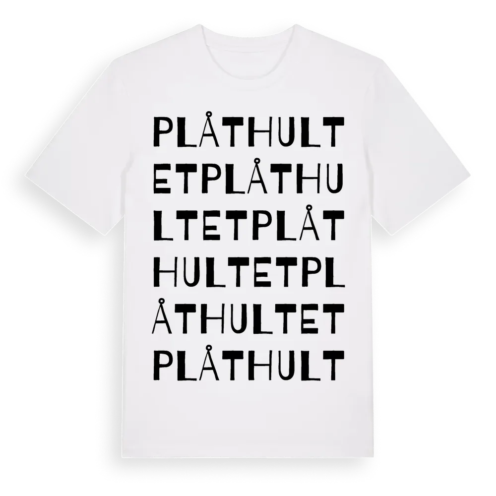 Plåthultet ordlek t-shirt är inspirerad av Plåthultet i Värmlands län, Sverige. Tröjan är designad för dig som har en speciell koppling till platsen – oavsett om du bor här, har rötterna här eller bara älskar Plåthultet.