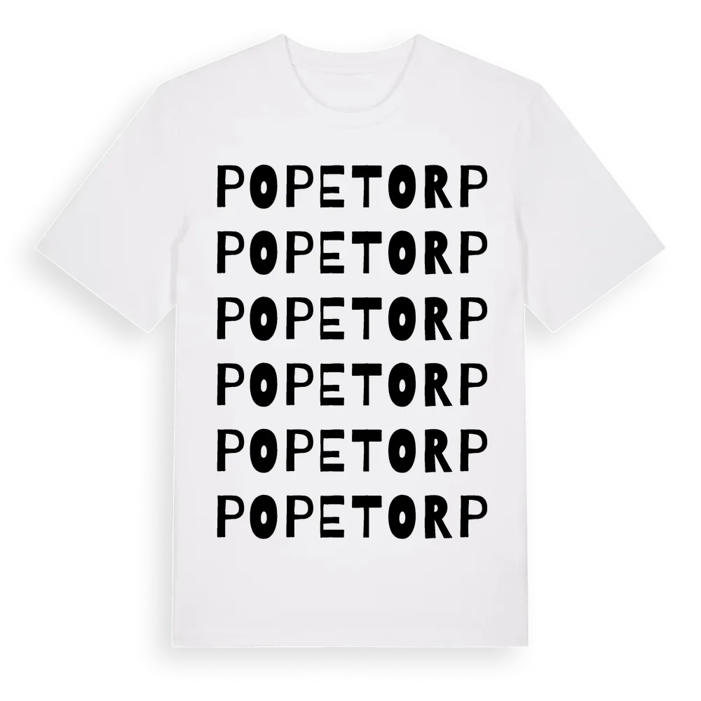Popetorp ordlek t-shirt är inspirerad av Popetorp i Värmlands län, Sverige. Tröjan är designad för dig som har en speciell koppling till platsen – oavsett om du bor här, har rötterna här eller bara älskar Popetorp.