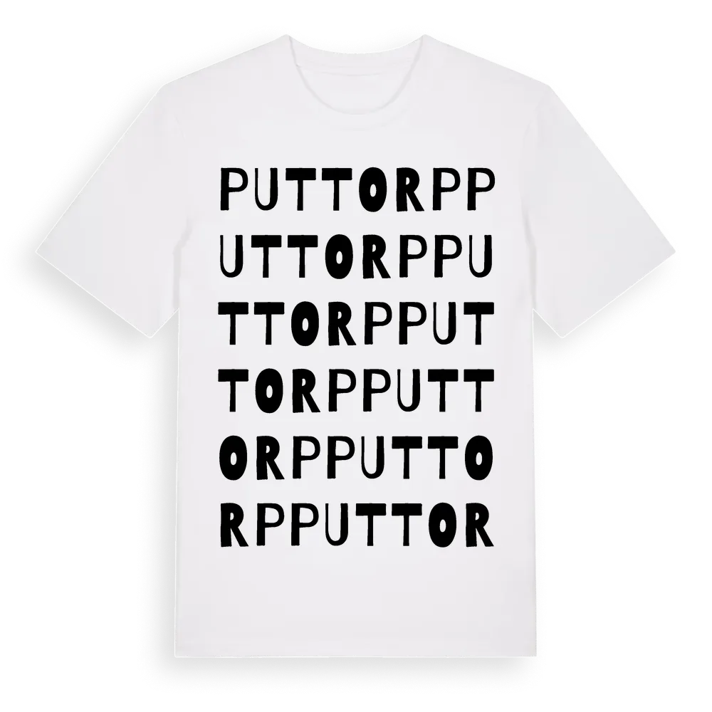 En ordlek byggd på Puttorps namn. Subtilt och klurig – ett motiv som bara de som verkligen känner platsen fullt ut förstår. Premium bomull, unisex – från byn Puttorp i Värmlands län.