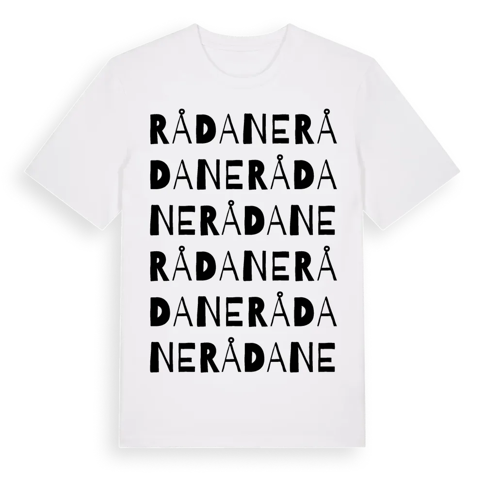 Rådane ordlek t-shirt är inspirerad av Rådane i Värmlands län, Sverige. Tröjan är designad för dig som har en speciell koppling till platsen – oavsett om du bor här, har rötterna här eller bara älskar Rådane.