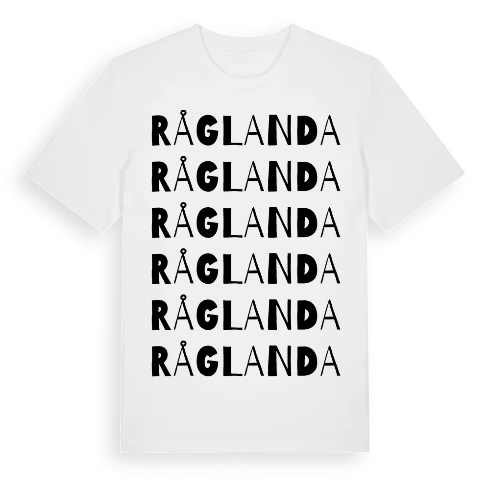 Råglanda ordlek t-shirt är inspirerad av byn Råglanda i Värmlands län, Sverige. Tröjan är designad för dig som har en speciell koppling till platsen – oavsett om du bor här, har rötterna här eller bara älskar Råglanda.