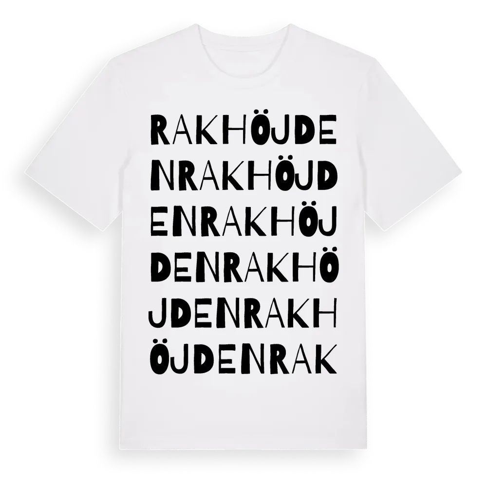 Rakhöjden ordlek t-shirt är inspirerad av byn Rakhöjden i Värmlands län, Sverige. Tröjan är designad för dig som har en speciell koppling till platsen – oavsett om du bor här, har rötterna här eller bara älskar Rakhöjden.