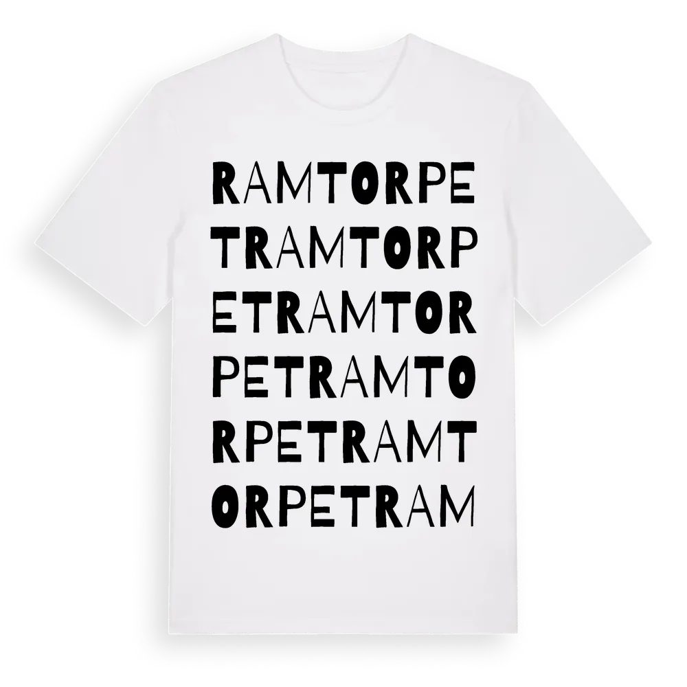 Ramtorpet ordlek t-shirt är inspirerad av Ramtorpet i Värmlands län, Sverige. Tröjan är designad för dig som har en speciell koppling till platsen – oavsett om du bor här, har rötterna här eller bara älskar Ramtorpet.