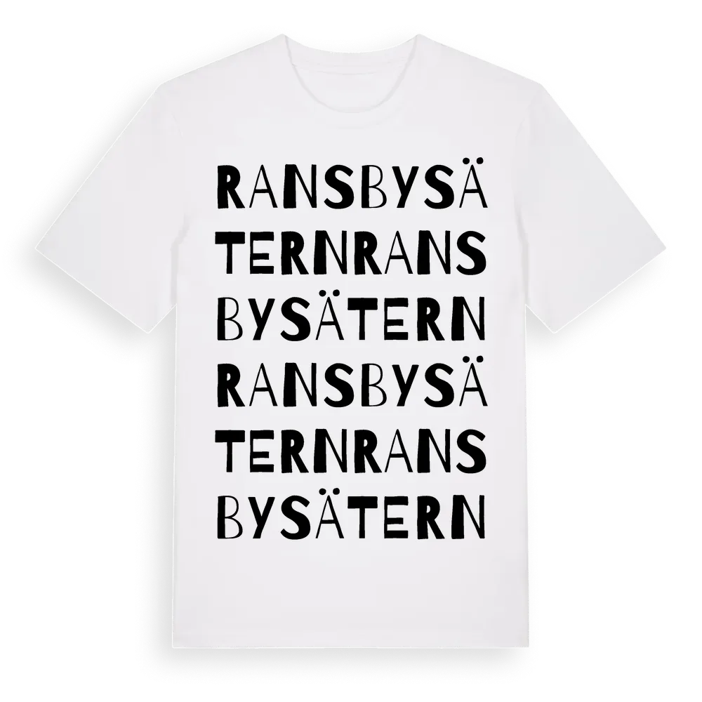 Ransbysätern ordlek t-shirt är inspirerad av Ransbysätern i Värmlands län, Sverige. Tröjan är designad för dig som har en speciell koppling till platsen – oavsett om du bor här, har rötterna här eller bara älskar Ransbysätern.