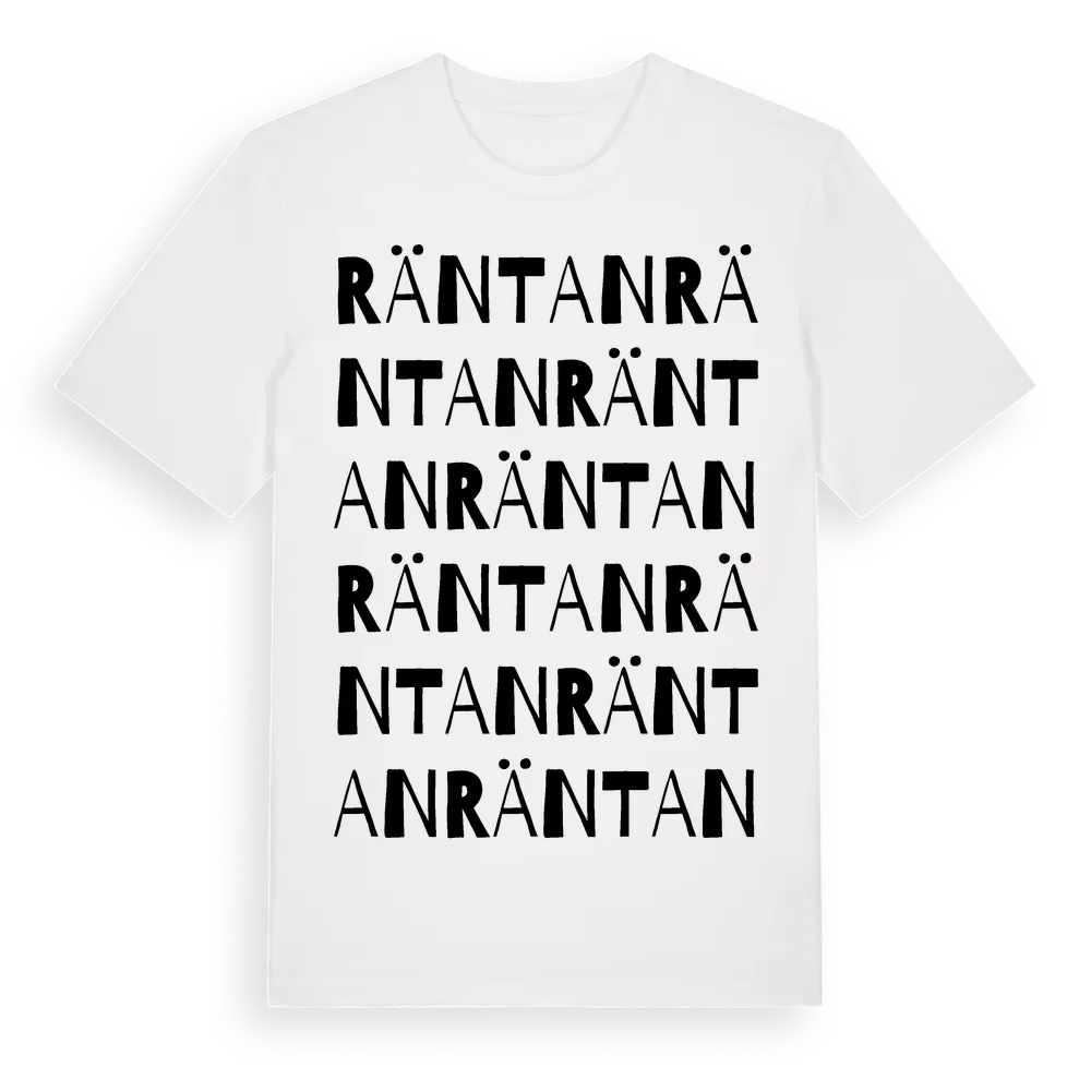 Räntan ordlek t-shirt är inspirerad av Räntan i Värmlands län, Sverige. Tröjan är designad för dig som har en speciell koppling till platsen – oavsett om du bor här, har rötterna här eller bara älskar Räntan.