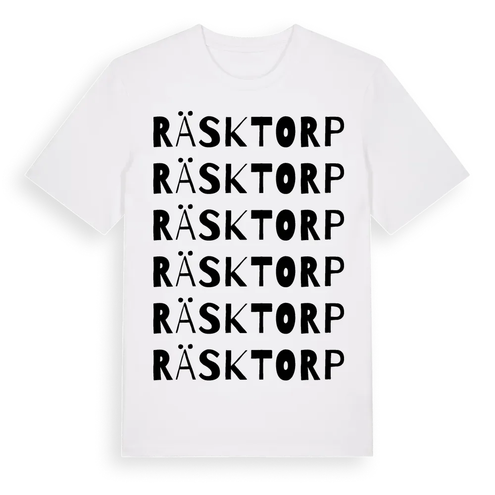 En ordlek byggd på Räsktorps namn. Subtilt och klurig – ett motiv som bara de som verkligen känner platsen fullt ut förstår. Premium bomull, unisex – från Räsktorp i Värmlands län.