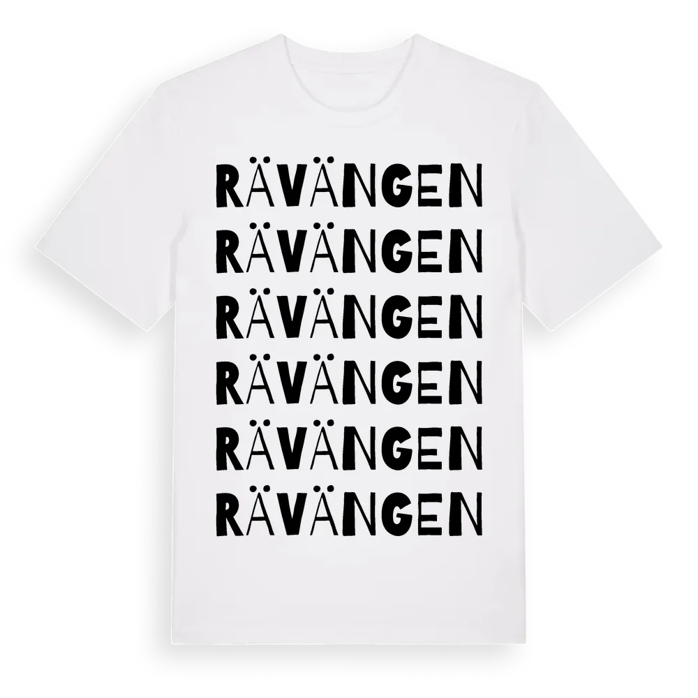 Rävängen ordlek t-shirt är inspirerad av Rävängen i Värmlands län, Sverige. Tröjan är designad för dig som har en speciell koppling till platsen – oavsett om du bor här, har rötterna här eller bara älskar Rävängen.