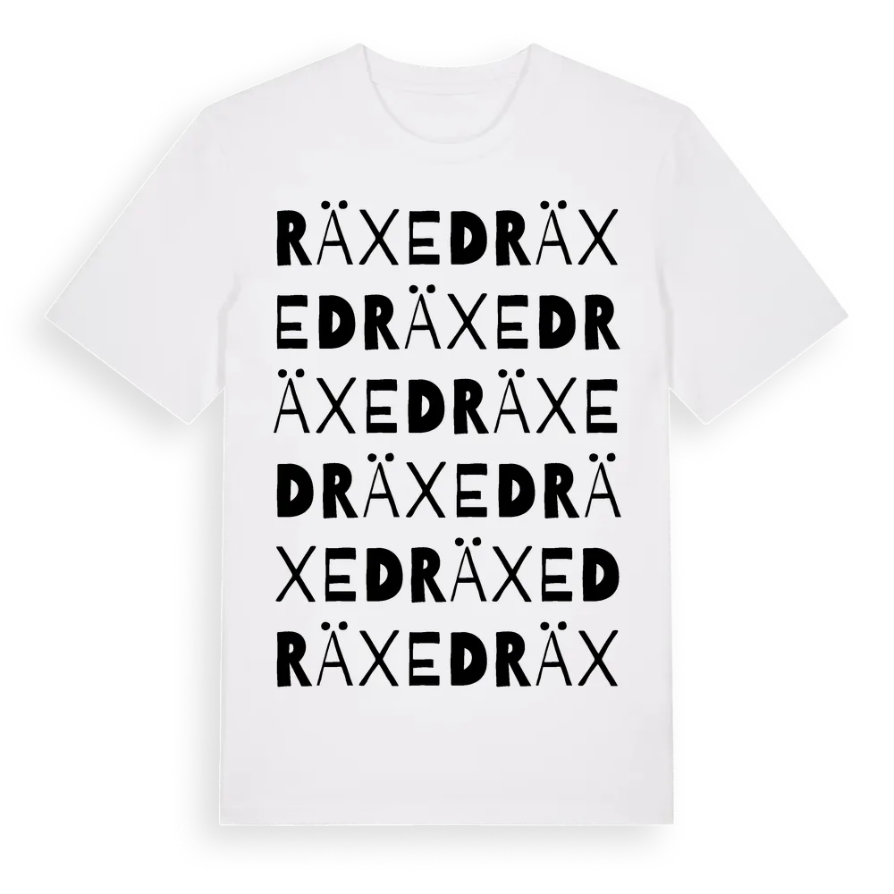 Räxed ordlek t-shirt är inspirerad av byn Räxed i Värmlands län, Sverige. Tröjan är designad för dig som har en speciell koppling till platsen – oavsett om du bor här, har rötterna här eller bara älskar Räxed.