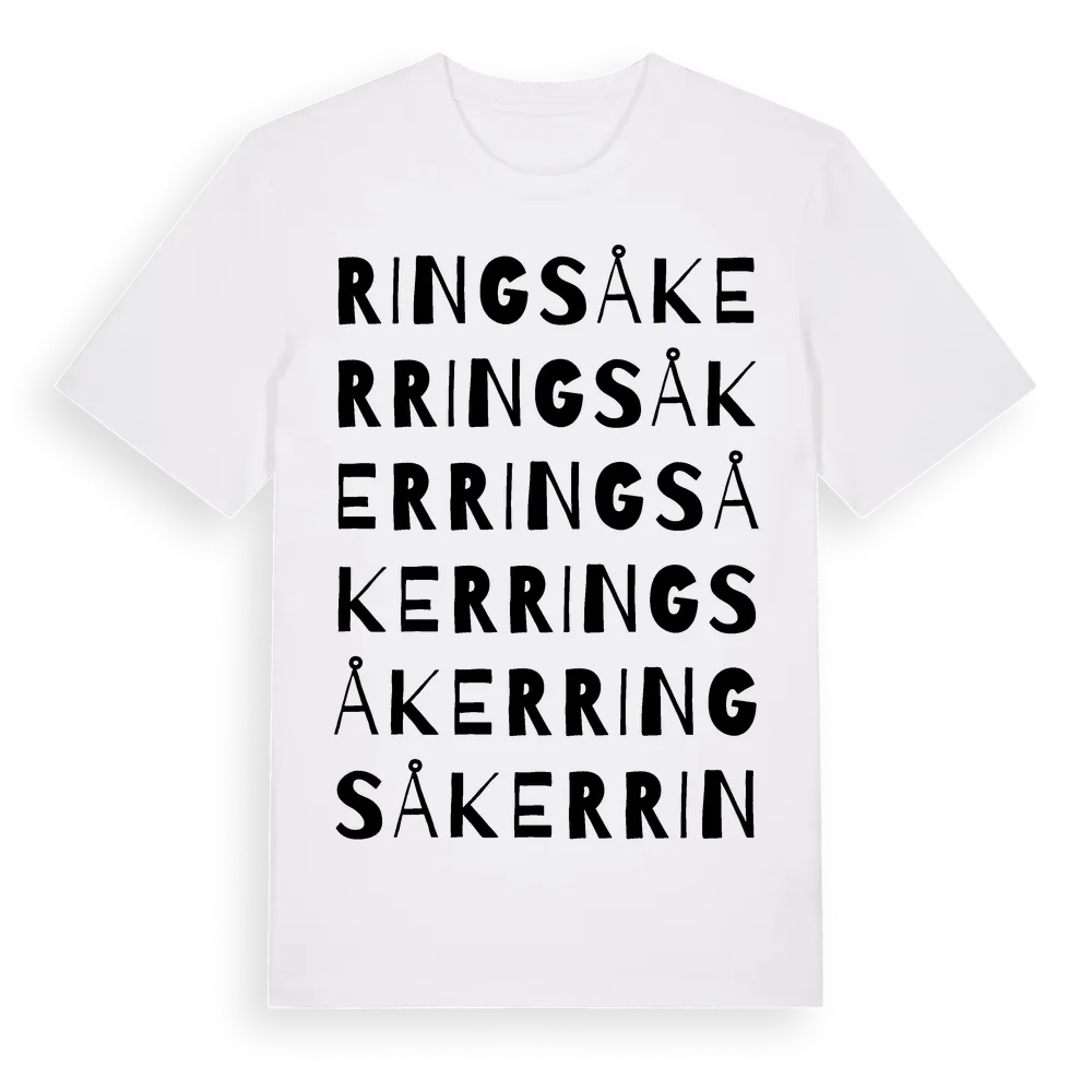 Ringsåker ordlek t-shirt är inspirerad av Ringsåker i Värmlands län, Sverige. Tröjan är designad för dig som har en speciell koppling till platsen – oavsett om du bor här, har rötterna här eller bara älskar Ringsåker.