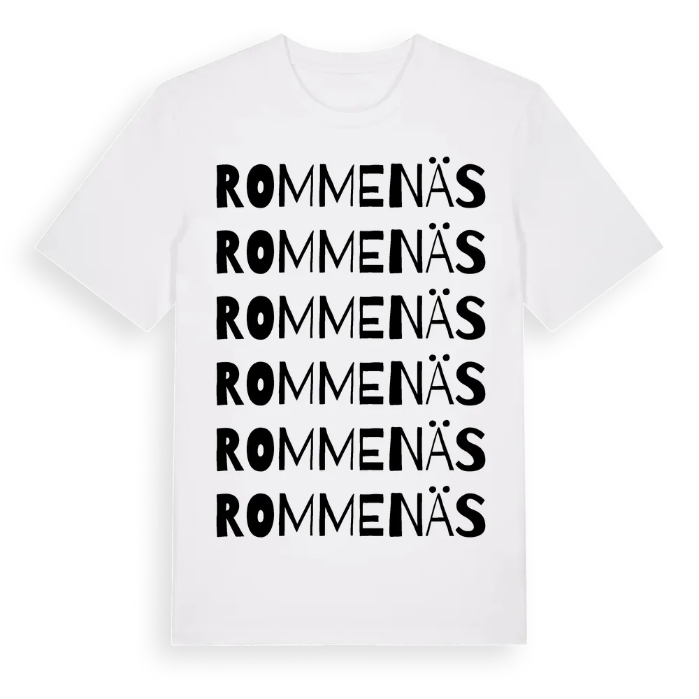 Rommenäs ordlek t-shirt är inspirerad av byn Rommenäs i Värmlands län, Sverige. Tröjan är designad för dig som har en speciell koppling till platsen – oavsett om du bor här, har rötterna här eller bara älskar Rommenäs.