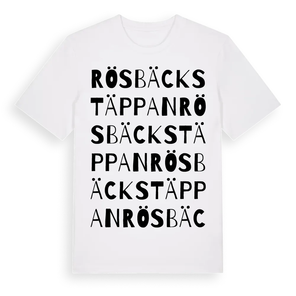 Rösbäckstäppan ordlek t-shirt är inspirerad av Rösbäckstäppan i Värmlands län, Sverige. Tröjan är designad för dig som har en speciell koppling till platsen – oavsett om du bor här, har rötterna här eller bara älskar Rösbäckstäppan.