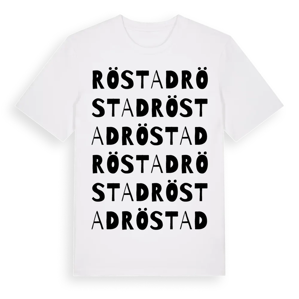 Röstad ordlek t-shirt är inspirerad av Röstad i Värmlands län, Sverige. Tröjan är designad för dig som har en speciell koppling till platsen – oavsett om du bor här, har rötterna här eller bara älskar Röstad.