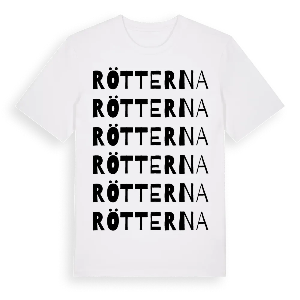 En ordlek byggd på Rötternas namn. Subtilt och klurig – ett motiv som bara de som verkligen känner platsen fullt ut förstår. Premium bomull, unisex – från Rötterna i Värmlands län.