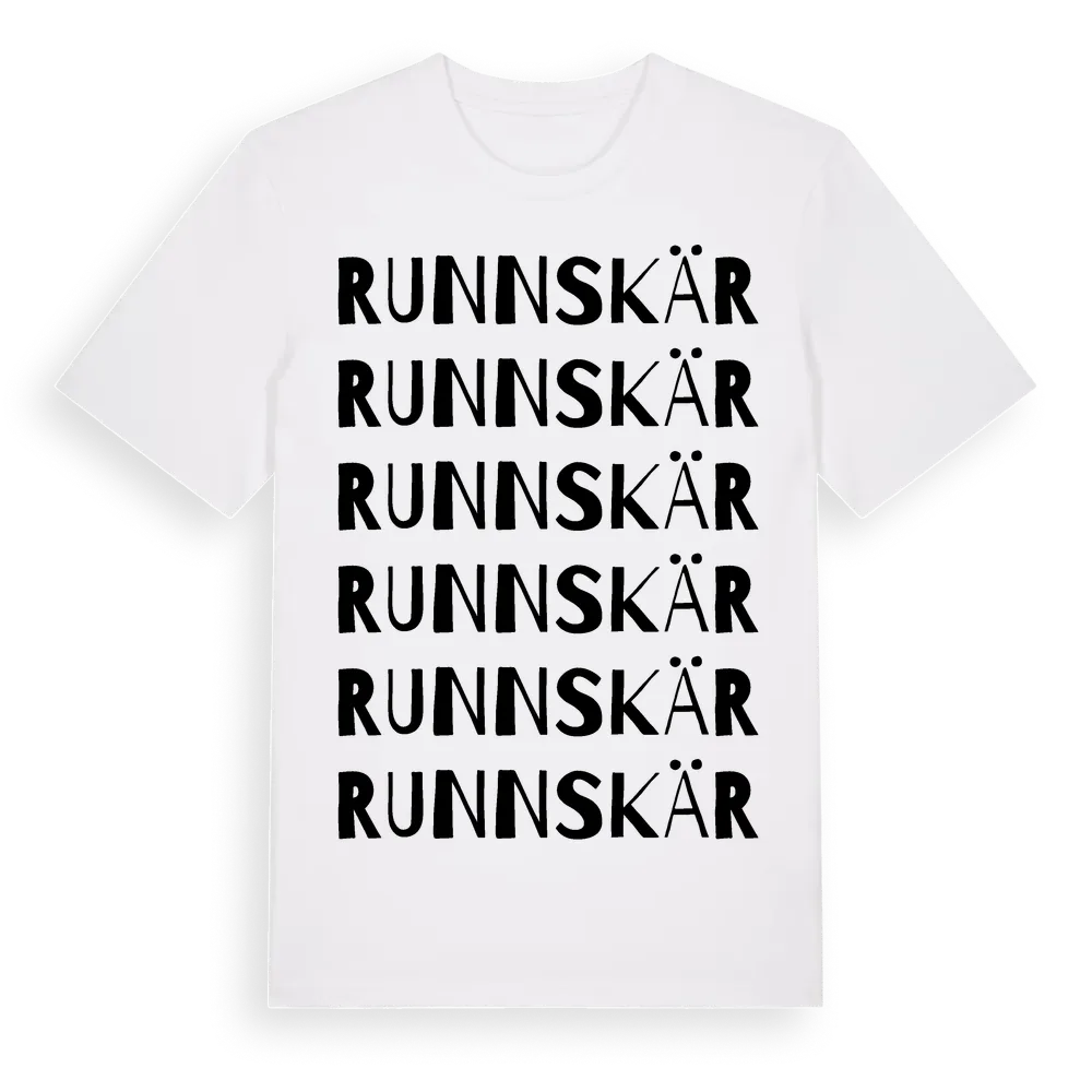 Runnskär ordlek t-shirt är inspirerad av Runnskär i Värmlands län, Sverige. Tröjan är designad för dig som har en speciell koppling till platsen – oavsett om du bor här, har rötterna här eller bara älskar Runnskär.
