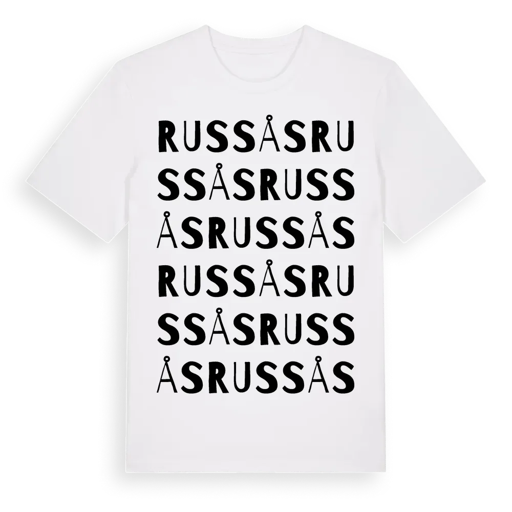 Russås ordlek t-shirt är inspirerad av Russås i Värmlands län, Sverige. Tröjan är designad för dig som har en speciell koppling till platsen – oavsett om du bor här, har rötterna här eller bara älskar Russås.