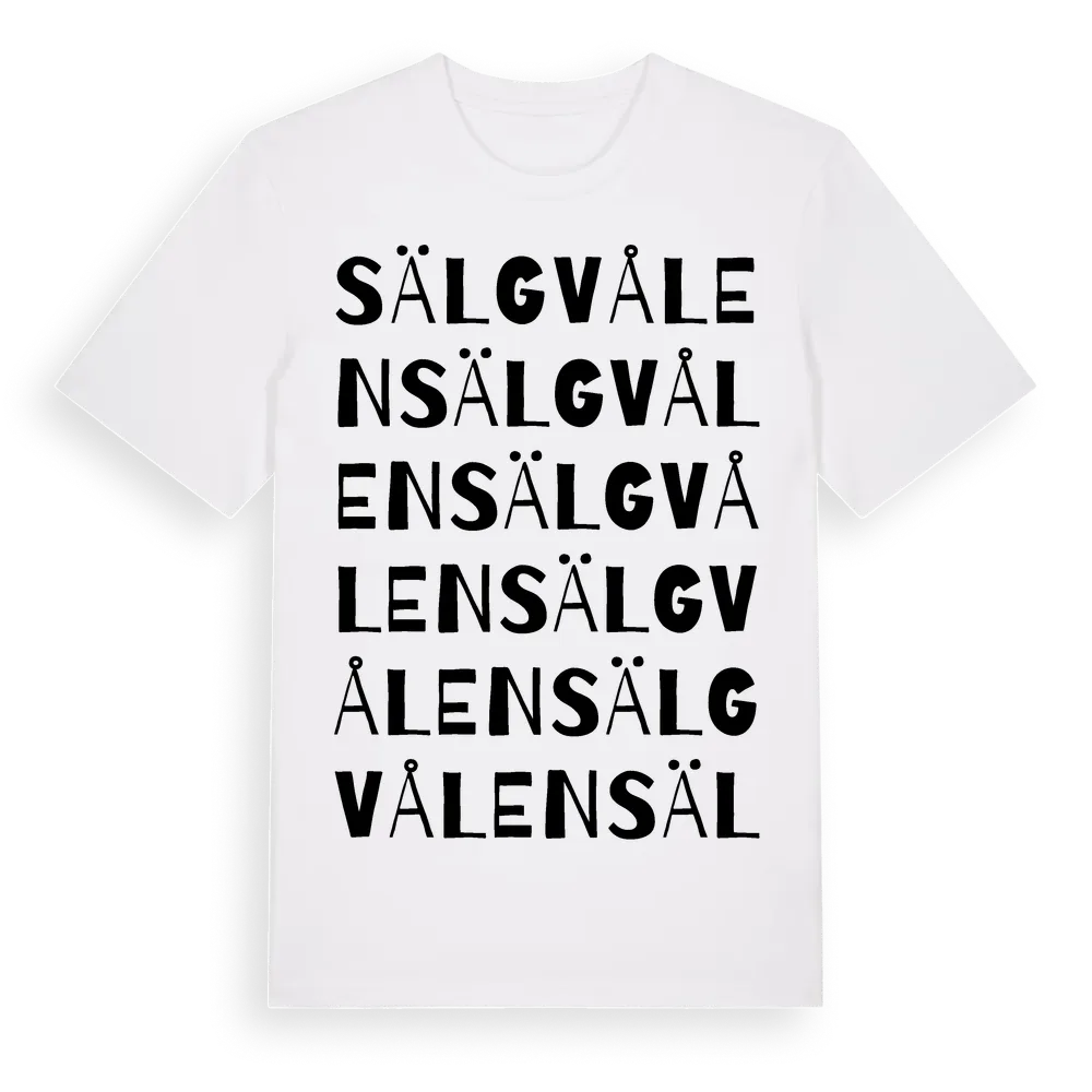 Sälgvålen ordlek t-shirt är inspirerad av Sälgvålen i Värmlands län, Sverige. Tröjan är designad för dig som har en speciell koppling till platsen – oavsett om du bor här, har rötterna här eller bara älskar Sälgvålen.