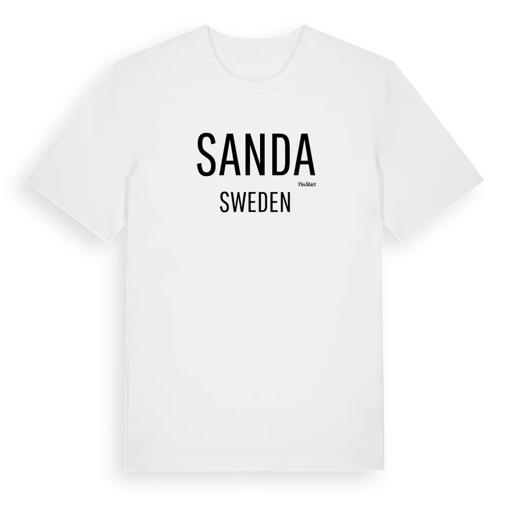 Sanda i Sverige – ett rakt och tydligt utrop om var du hör hemma. Inget mer behövs. Premium bomull, unisex – från byn Sanda i Värmlands län.