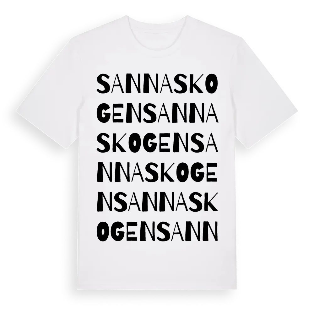 Sannaskogen ordlek t-shirt är inspirerad av Sannaskogen i Värmlands län, Sverige. Tröjan är designad för dig som har en speciell koppling till platsen – oavsett om du bor här, har rötterna här eller bara älskar Sannaskogen.