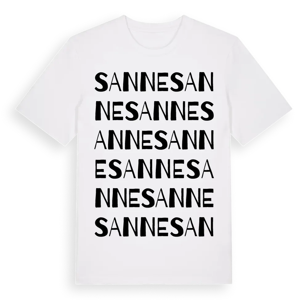 Sanne ordlek t-shirt är inspirerad av Sanne i Värmlands län, Sverige. Tröjan är designad för dig som har en speciell koppling till platsen – oavsett om du bor här, har rötterna här eller bara älskar Sanne.