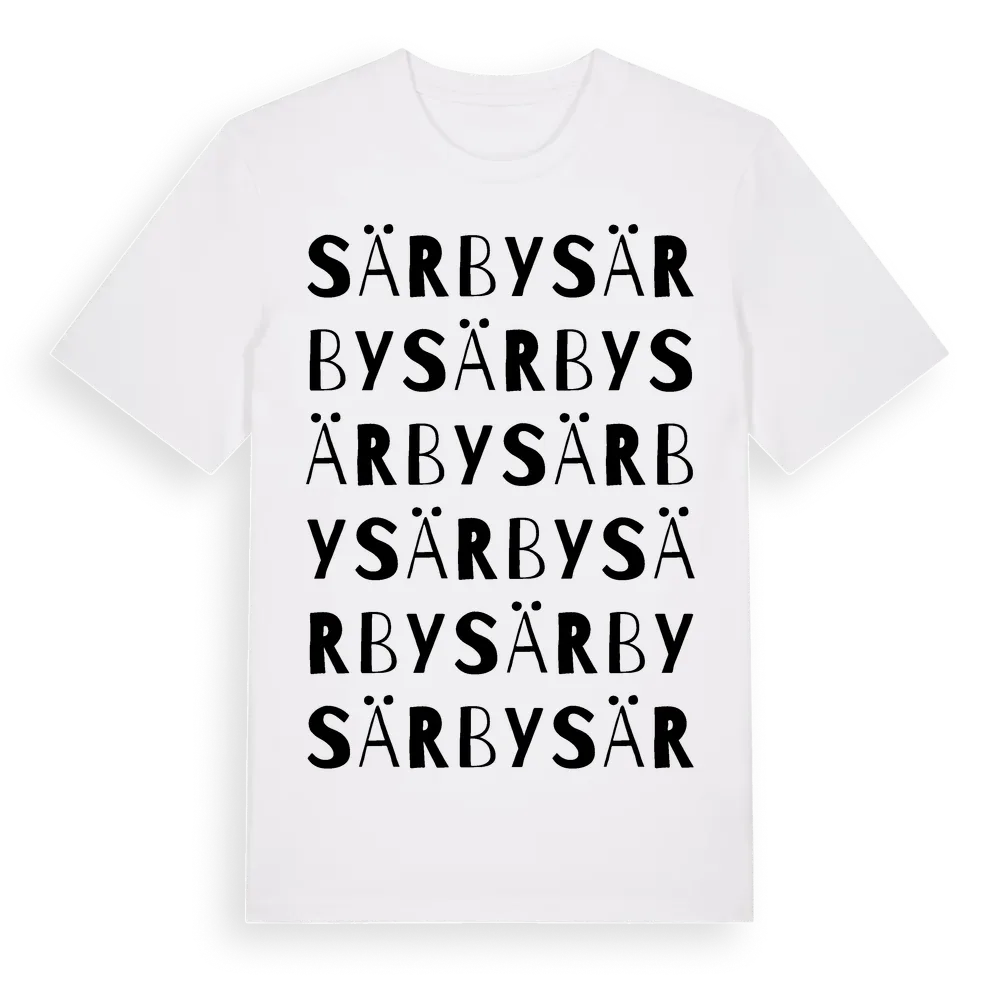 Särby ordlek t-shirt är inspirerad av Särby i Värmlands län, Sverige. Tröjan är designad för dig som har en speciell koppling till platsen – oavsett om du bor här, har rötterna här eller bara älskar Särby.