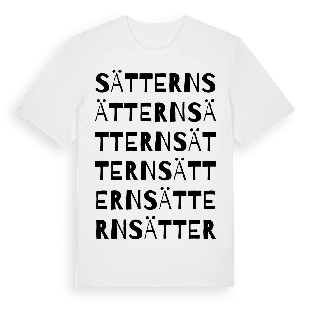 Sättern ordlek t-shirt är inspirerad av Sättern i Värmlands län, Sverige. Tröjan är designad för dig som har en speciell koppling till platsen – oavsett om du bor här, har rötterna här eller bara älskar Sättern.