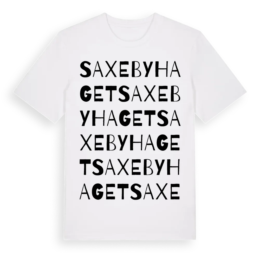 Saxebyhaget ordlek t-shirt är inspirerad av Saxebyhaget i Värmlands län, Sverige. Tröjan är designad för dig som har en speciell koppling till platsen – oavsett om du bor här, har rötterna här eller bara älskar Saxebyhaget.