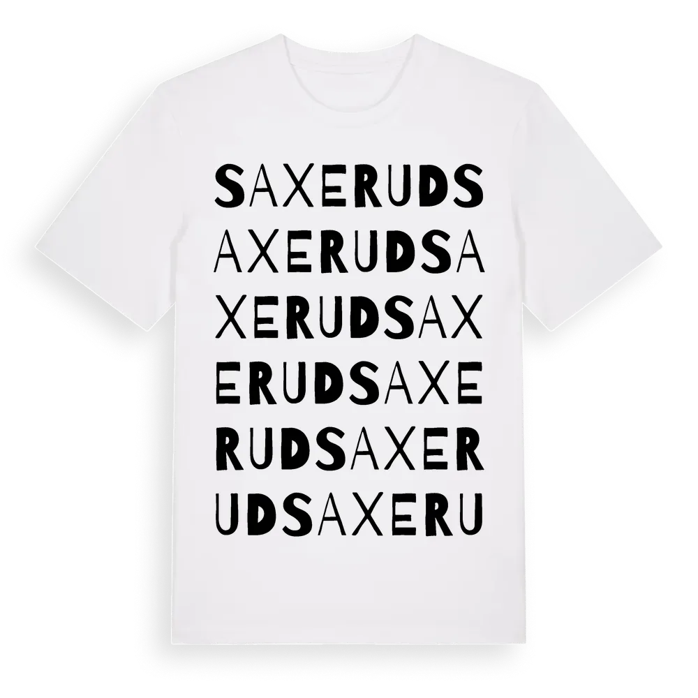 Saxerud ordlek t-shirt är inspirerad av Saxerud i Värmlands län, Sverige. Tröjan är designad för dig som har en speciell koppling till platsen – oavsett om du bor här, har rötterna här eller bara älskar Saxerud.