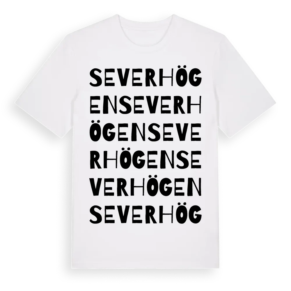 Severhögen ordlek t-shirt är inspirerad av Severhögen i Värmlands län, Sverige. Tröjan är designad för dig som har en speciell koppling till platsen – oavsett om du bor här, har rötterna här eller bara älskar Severhögen.