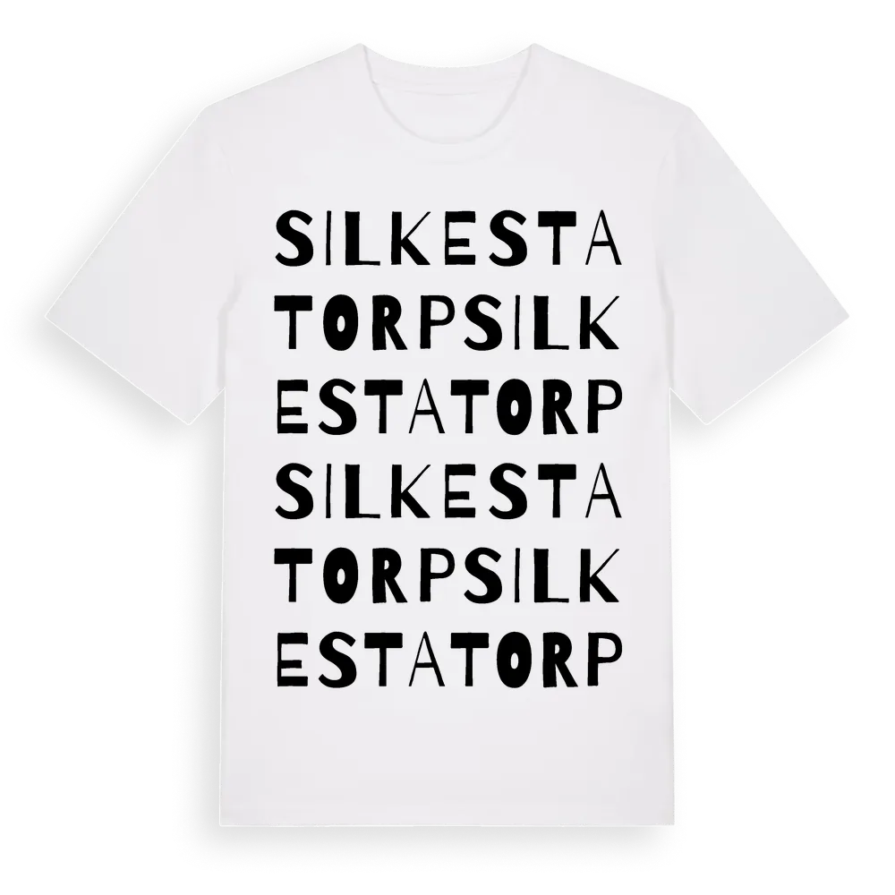 Silkestatorp ordlek t-shirt är inspirerad av Silkestatorp i Värmlands län, Sverige. Tröjan är designad för dig som har en speciell koppling till platsen – oavsett om du bor här, har rötterna här eller bara älskar Silkestatorp.