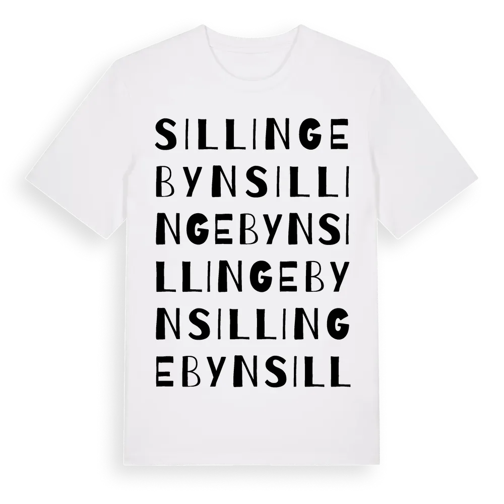 Sillingebyn ordlek t-shirt är inspirerad av Sillingebyn i Värmlands län, Sverige. Tröjan är designad för dig som har en speciell koppling till platsen – oavsett om du bor här, har rötterna här eller bara älskar Sillingebyn.
