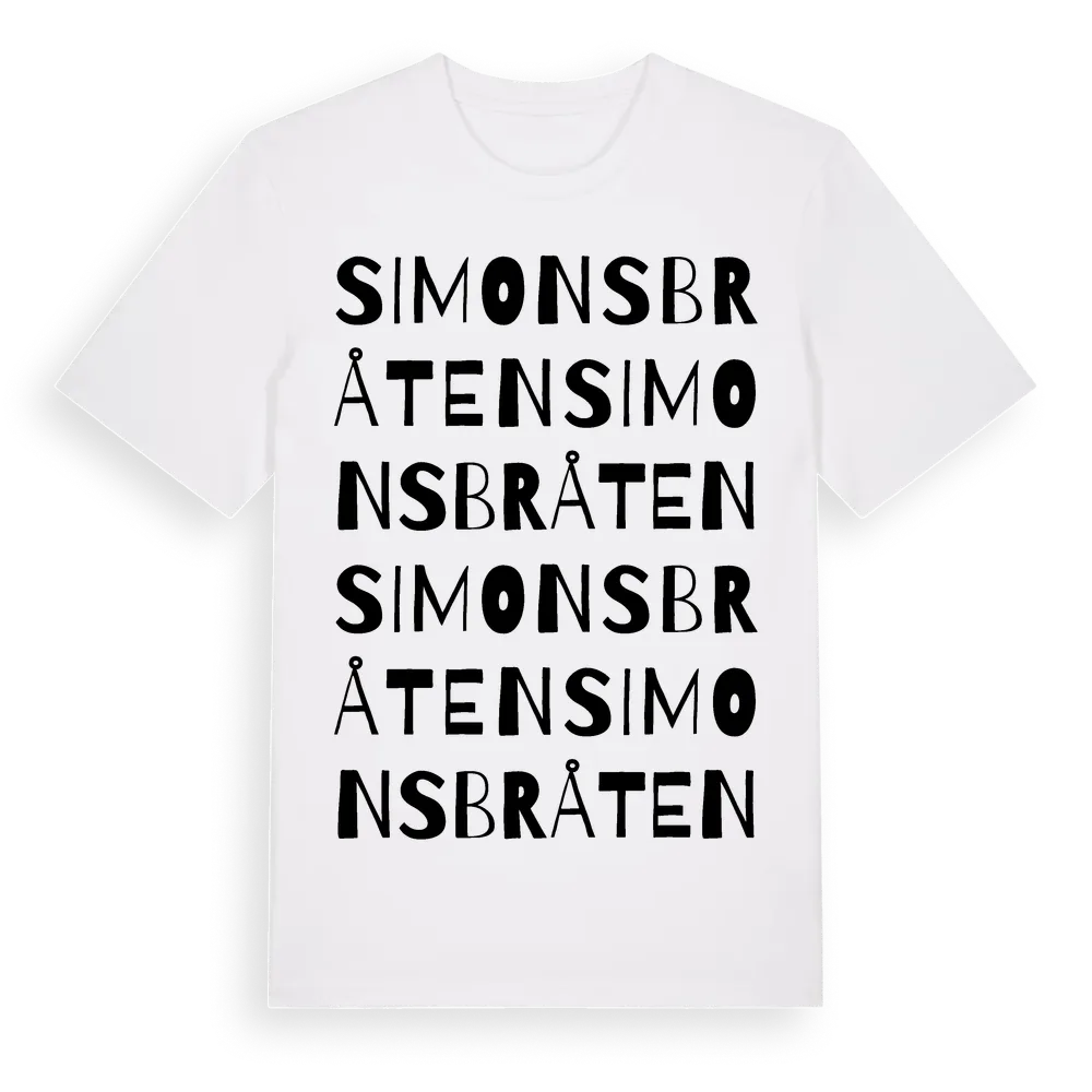 Simonsbråten ordlek t-shirt är inspirerad av Simonsbråten i Värmlands län, Sverige. Tröjan är designad för dig som har en speciell koppling till platsen – oavsett om du bor här, har rötterna här eller bara älskar Simonsbråten.