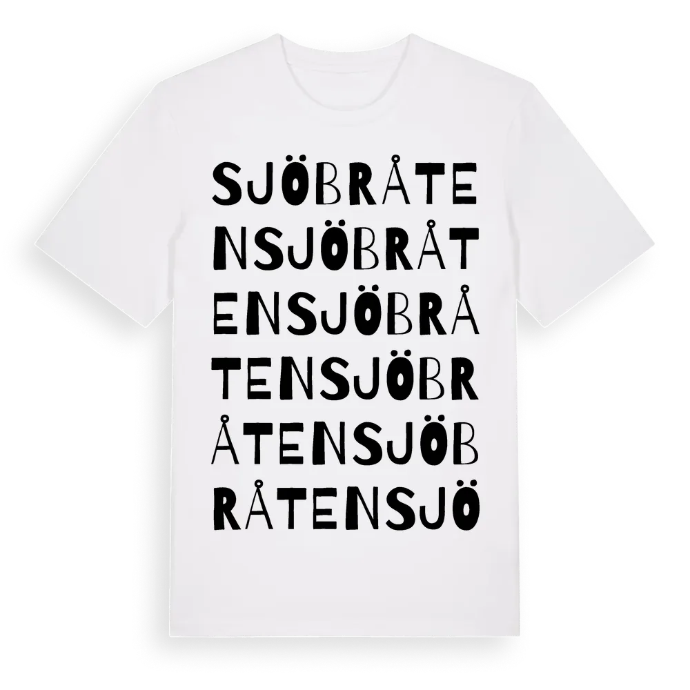 Sjöbråten ordlek t-shirt är inspirerad av Sjöbråten i Värmlands län, Sverige. Tröjan är designad för dig som har en speciell koppling till platsen – oavsett om du bor här, har rötterna här eller bara älskar Sjöbråten.