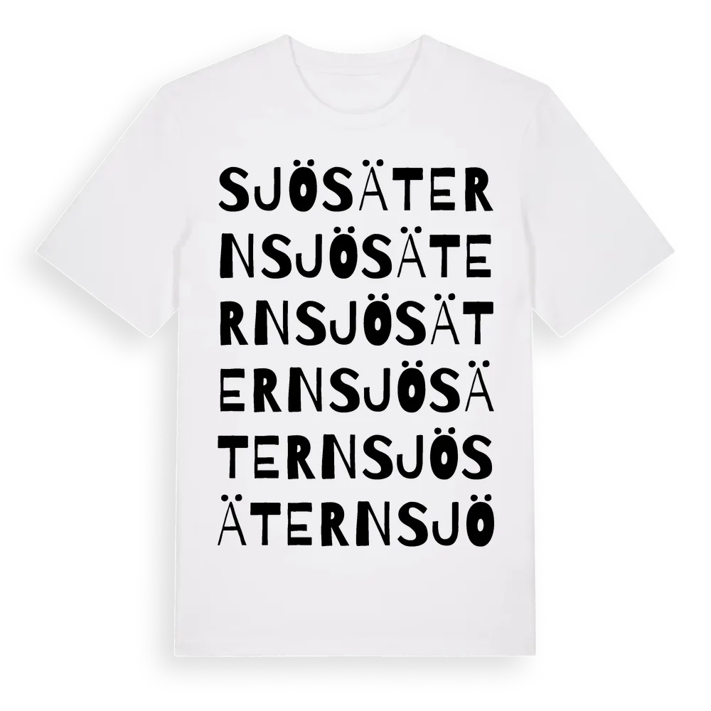 Sjösätern ordlek t-shirt är inspirerad av Sjösätern i Värmlands län, Sverige. Tröjan är designad för dig som har en speciell koppling till platsen – oavsett om du bor här, har rötterna här eller bara älskar Sjösätern.
