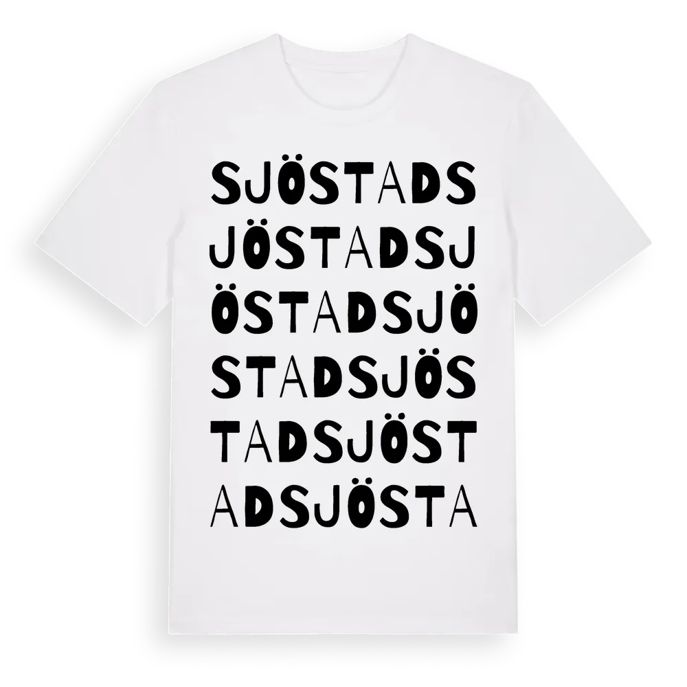 Sjöstad ordlek t-shirt är inspirerad av Sjöstad i Värmlands län, Sverige. Tröjan är designad för dig som har en speciell koppling till platsen – oavsett om du bor här, har rötterna här eller bara älskar Sjöstad.